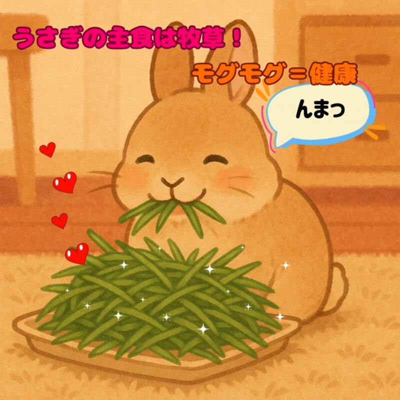うさぎの主食は牧草。ペレットは補助的な栄養源です。