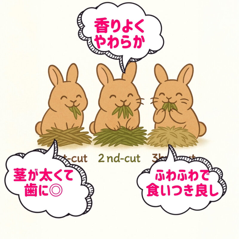 3番刈りはさらにふわふわで、食欲がないときや高齢・病後の子にもおすすめ。