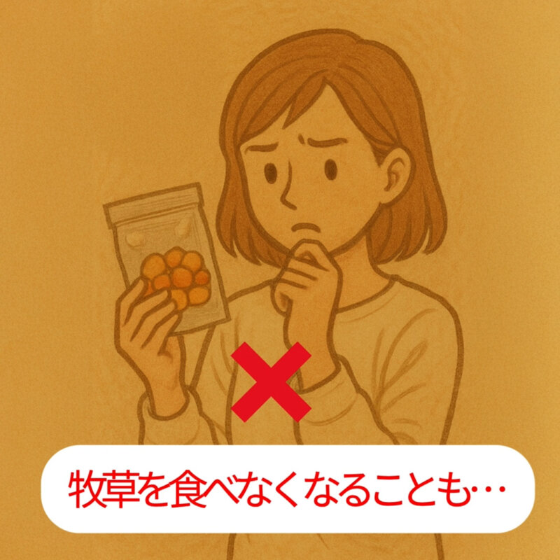 なぜなら、一度始めるとやめるのがとても難しく、牧草を食べなくなることもあるからです。