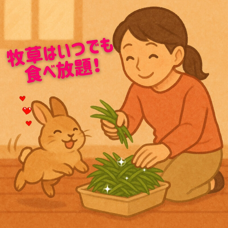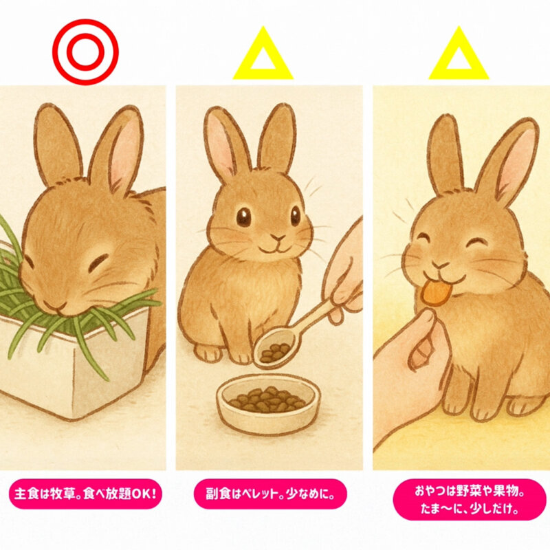 うさぎの主食は牧草。ペレットは補助的な栄養源です。
