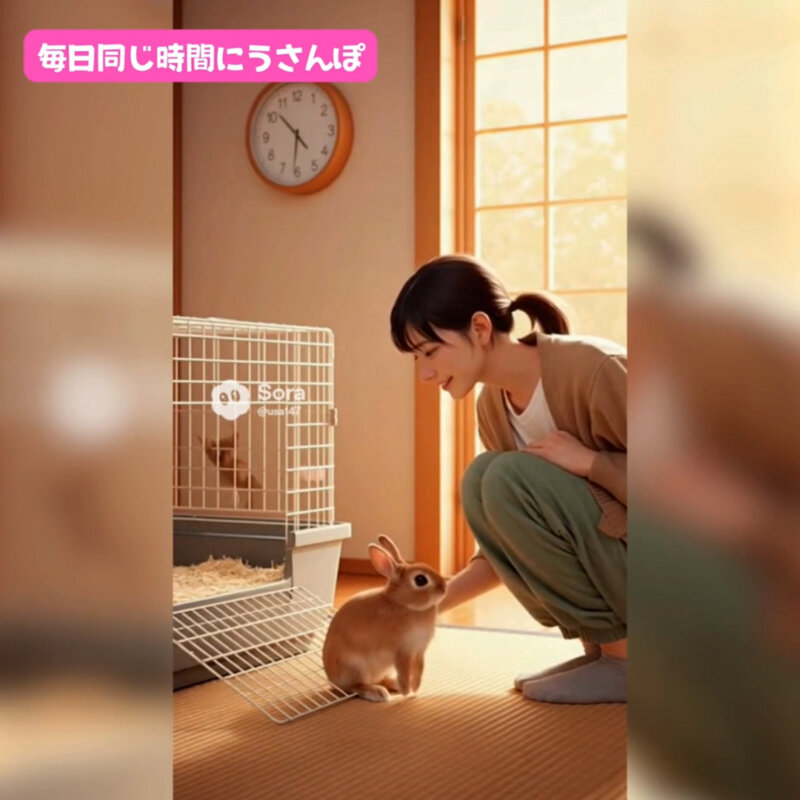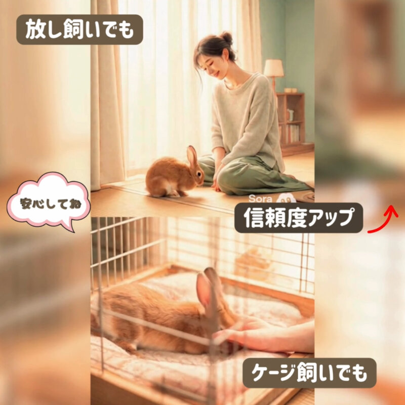 放し飼いでもケージ飼いでも、“この場所が安全だよ”と伝えることで、うさぎはどんどんリラックスしていきます。
