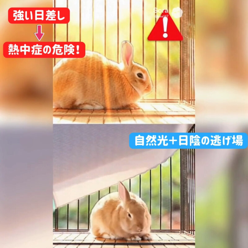 強い日差しは体温調節が苦手なうさぎに負担となり、熱中症のリスクが高まります。