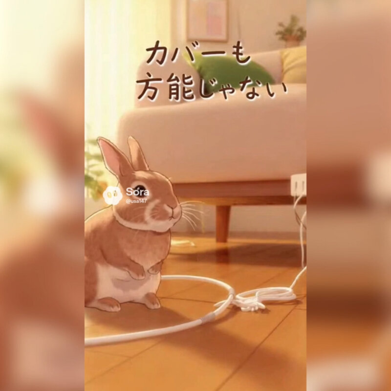 かじり防止カバーを使うときは、カバーごと齧ることもあるので、過信は禁物です。