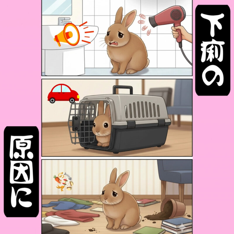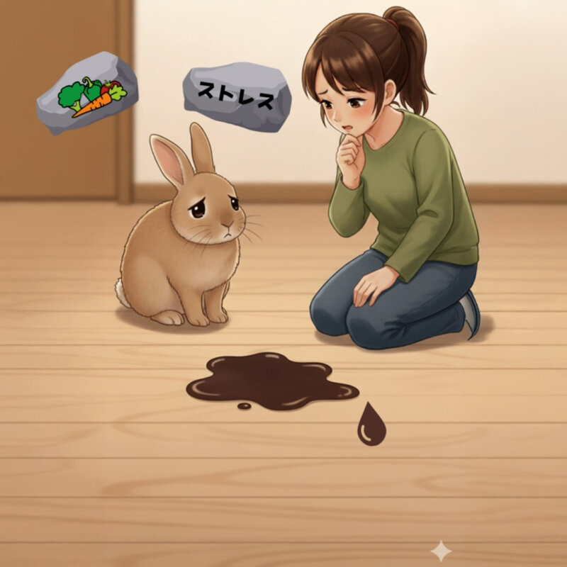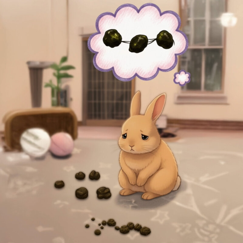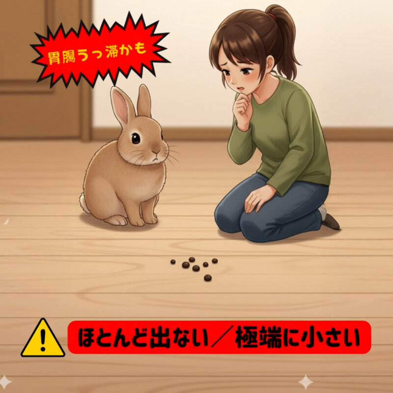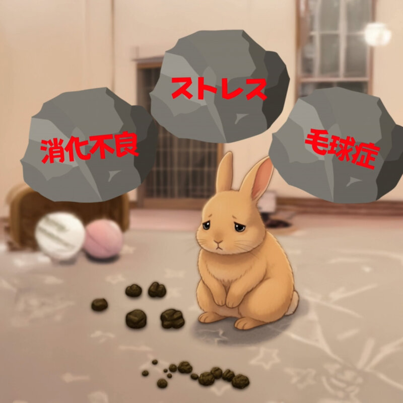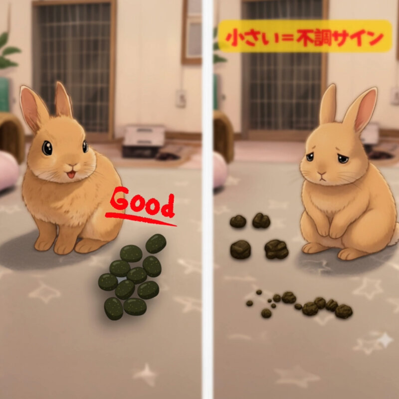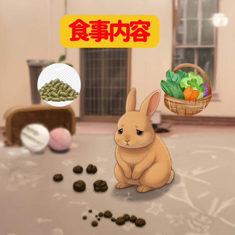また、食物繊維不足やペレット・野菜の与えすぎでも腸の働きが乱れ、うんちが小さくなることがあります。