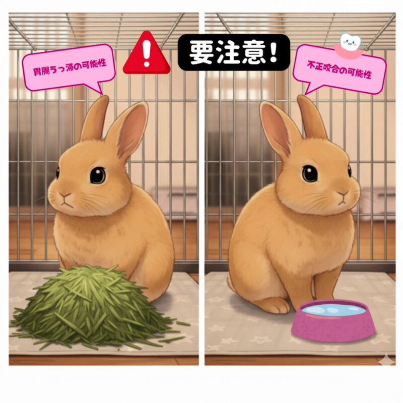 「牧草をあまり食べない…」「水を飲まない…」これは要注意!