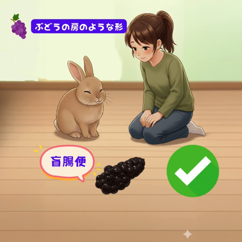 柔らかいけどぶどうの房のような形は盲腸便。これは正常です。