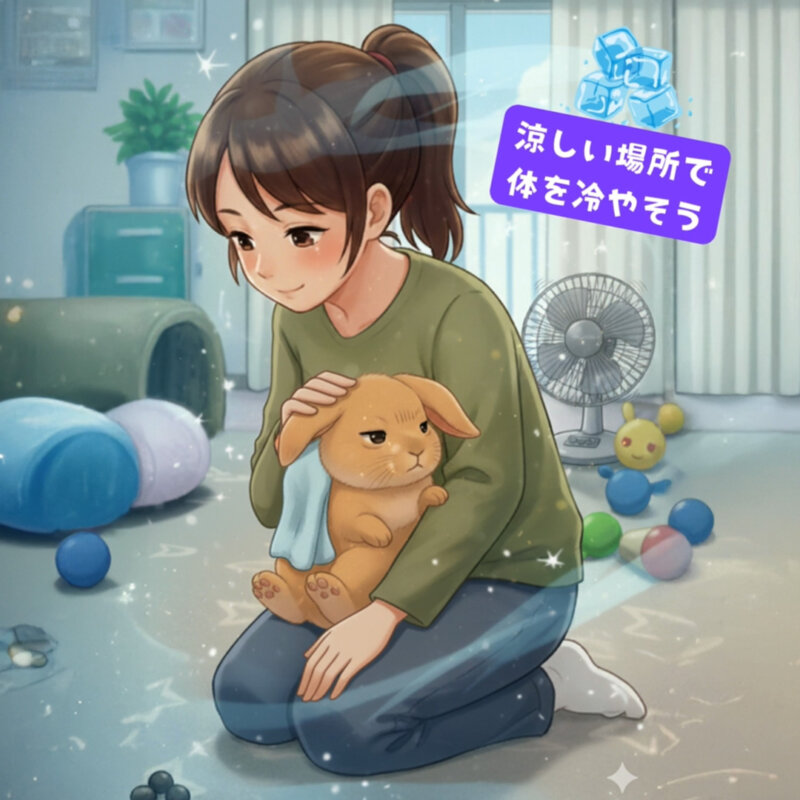 涼しい場所に移して、濡れタオルなどで体を冷やしてあげましょう。