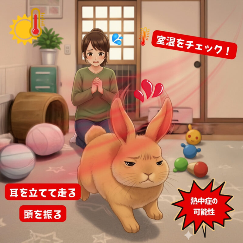 室温が高くて暑いとき、うさぎは耳を立てて走ったり、頭を振って耳を揺らすことがあります。