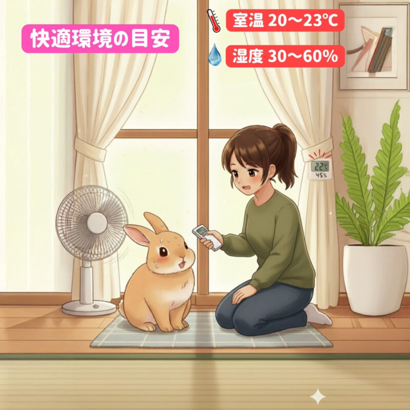 室温は20〜23℃、湿度は30〜60%を目安に調整してあげましょう。