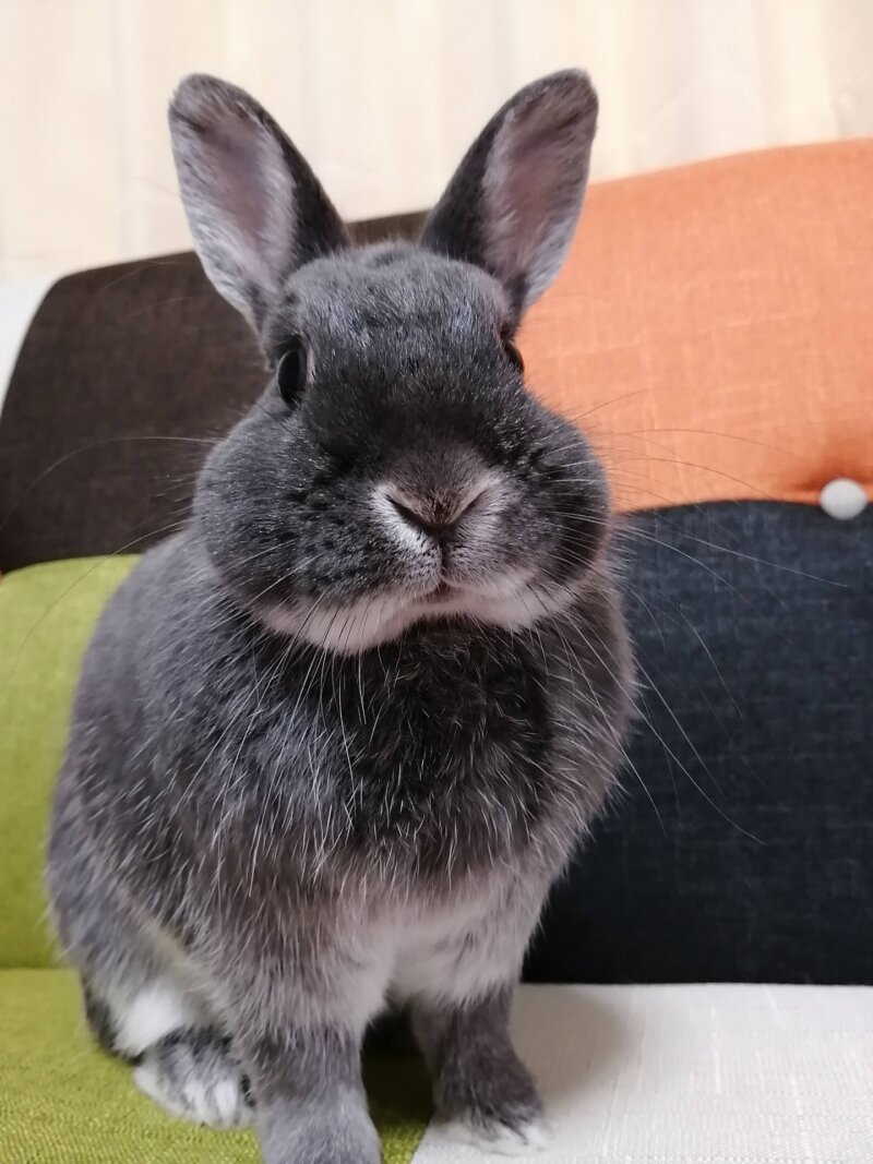 灰色の毛色のうさぎです。柔らかな印象がありますね。